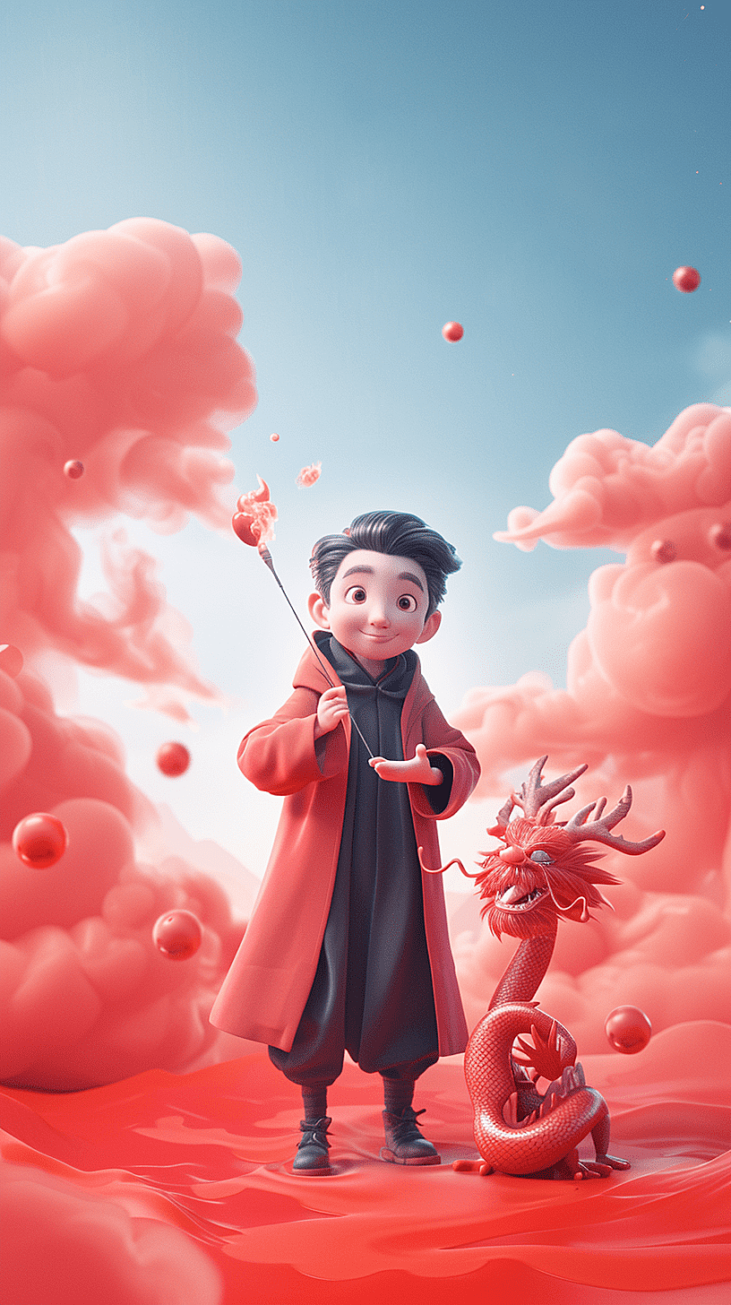 Ai绘画作品 24年1月8日 编辑 叶少侠官方认证 取消关注 关注 私信 一位魔术师手持魔杖,挥舞着魔法,身旁站着一条中国龙。这幅画以3D渲染,类似迪士尼风格呈现,背景是欢乐的红色,留有一些空白空间供文案或设计元素使用。整个画面应该明亮而愉快,给人带来喜悦的感觉。绘画关键词相关文章:小女孩骑在粉色龙背上的场景,融合了传统的中国元素两只可爱的龙面对面,地上摆放着饺子,弥漫着中国新年的气氛可爱的棕发宝宝,正快乐地坐在家中的小床上一只白色的北极熊和棕色的胖猫,在悠闲地躺在游泳池中晒太阳 给TA打赏 共{{data.count}}人人已打赏 Midjourney动画可爱唯美龙
