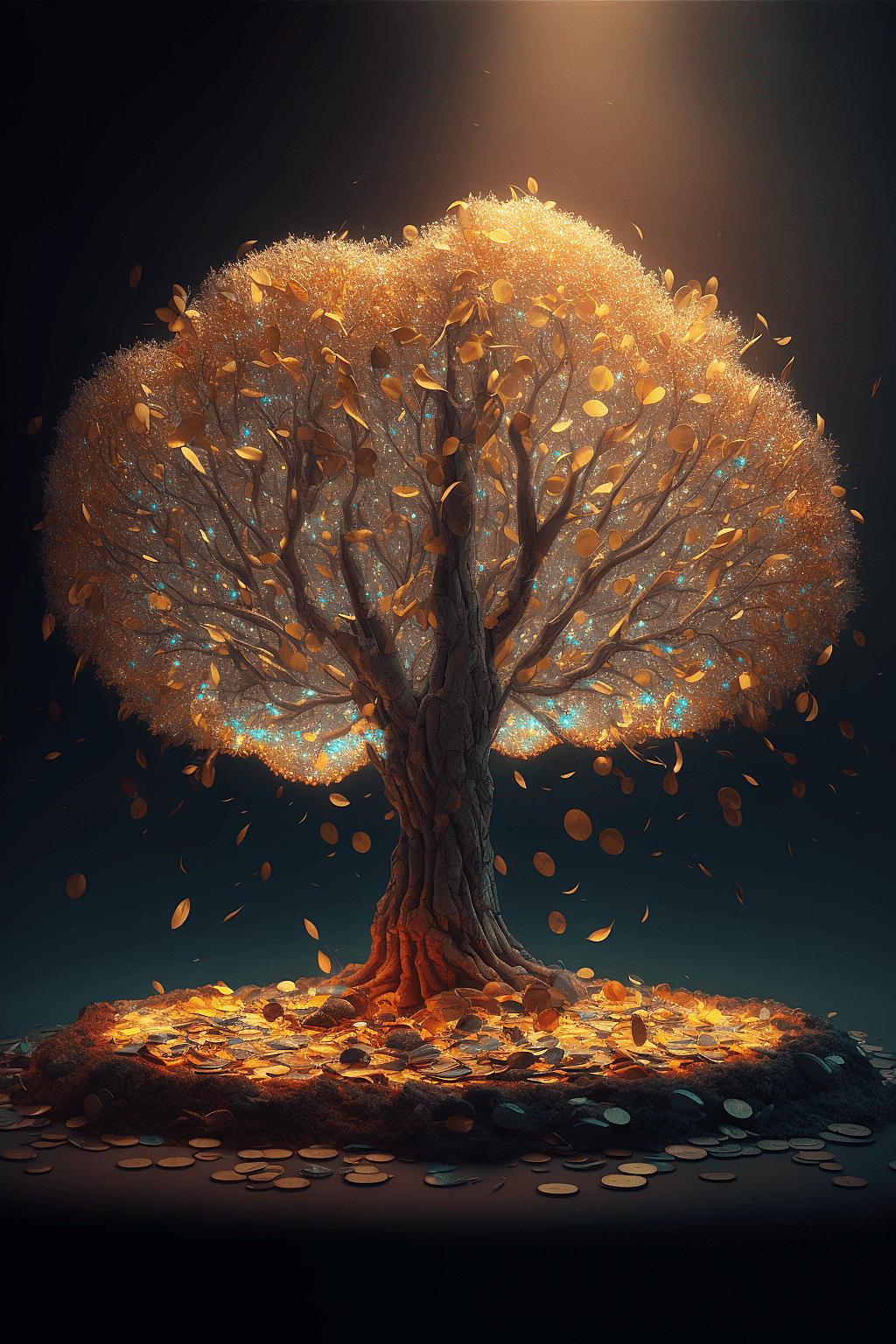 秋季森林里,一颗闪闪发光的魔法金钱树