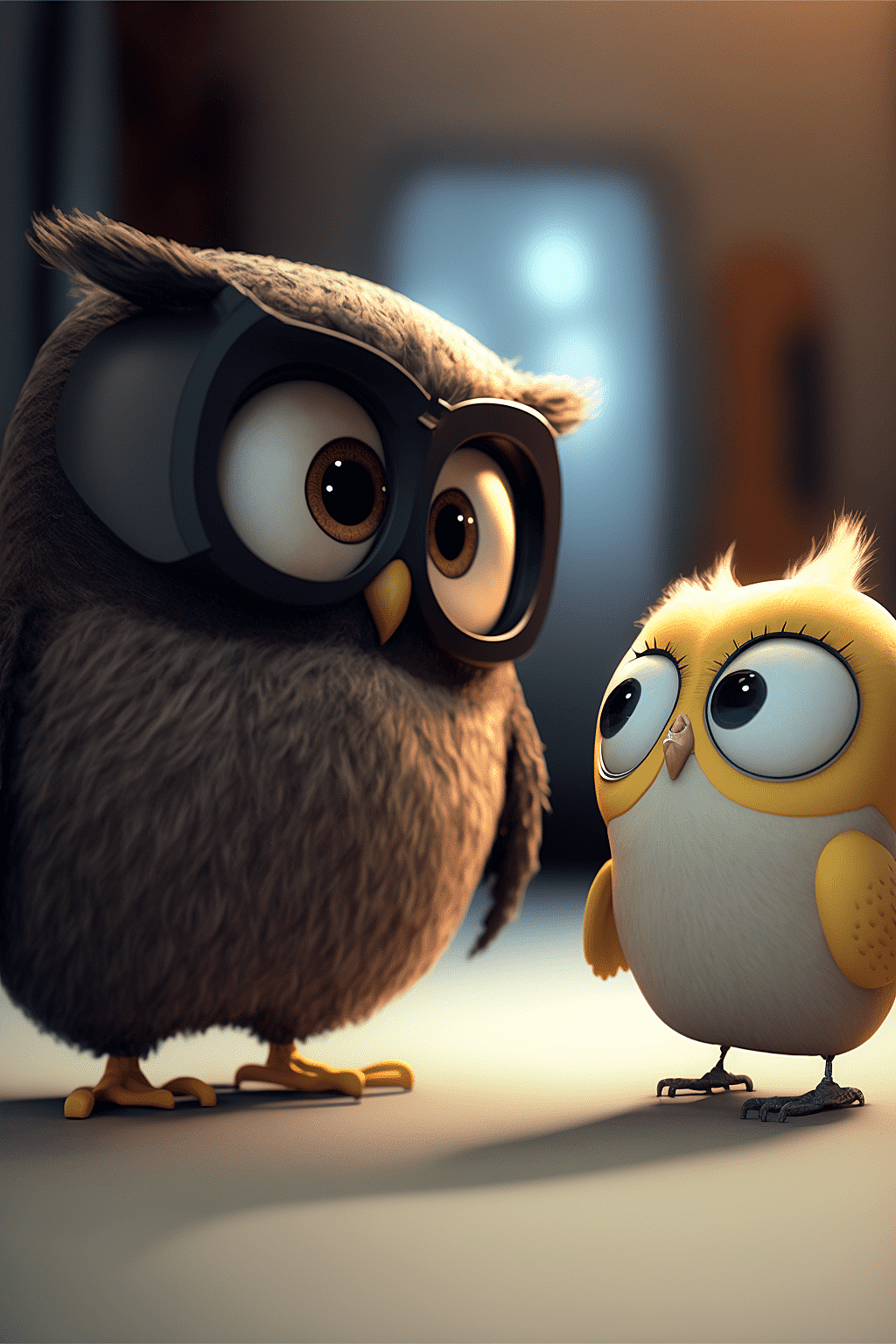 可爱的金丝雀和猫头鹰,皮克斯风格